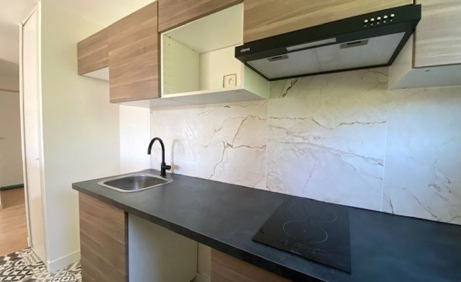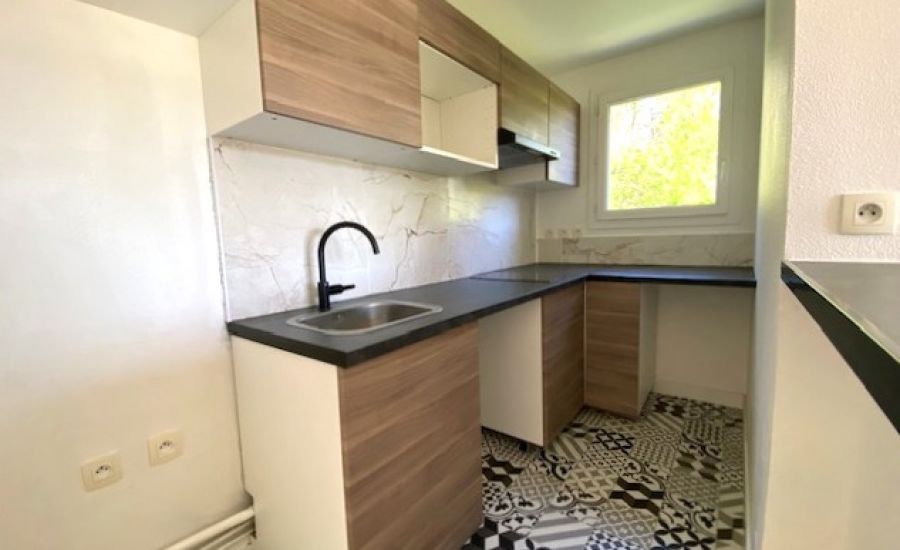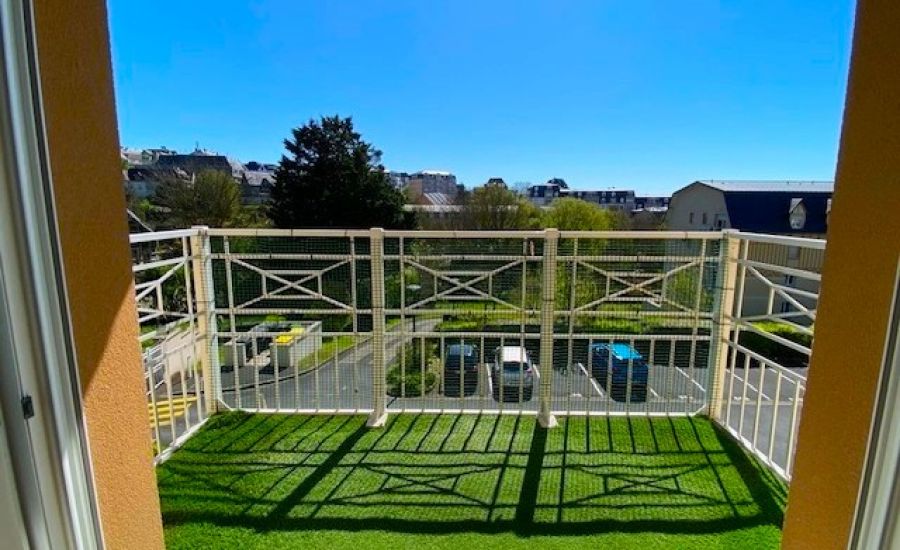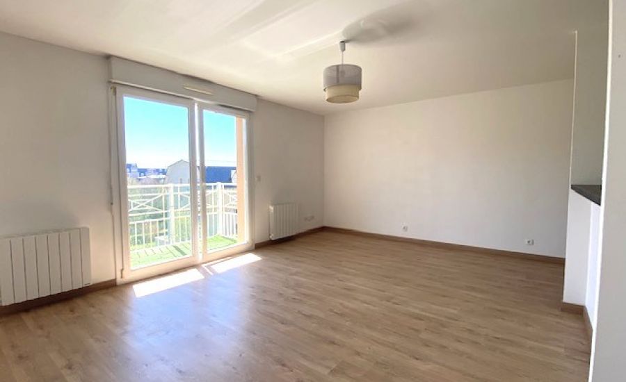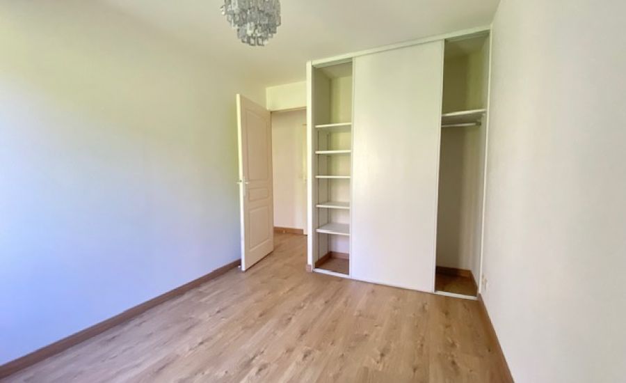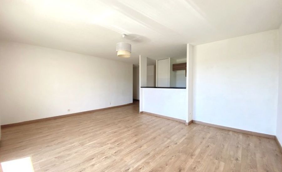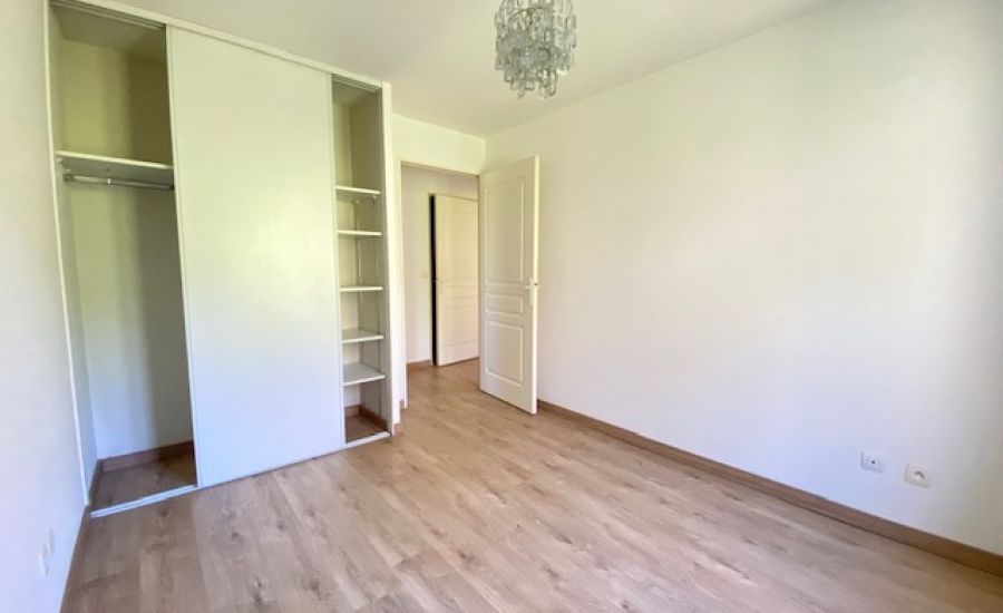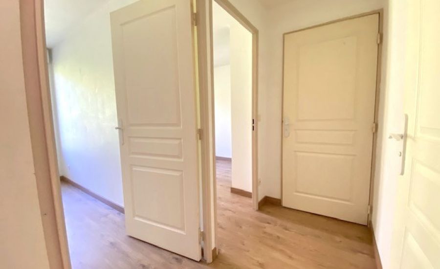 Entrée – Séjour avec Cuisine semi-ouverte aménagée donnant sur un balcon offrant une vue dégagée – Dégagement avec placard / penderie – 2 Chambres avec chacune sa penderie – Salle de Bains – Water-closet indépendants.